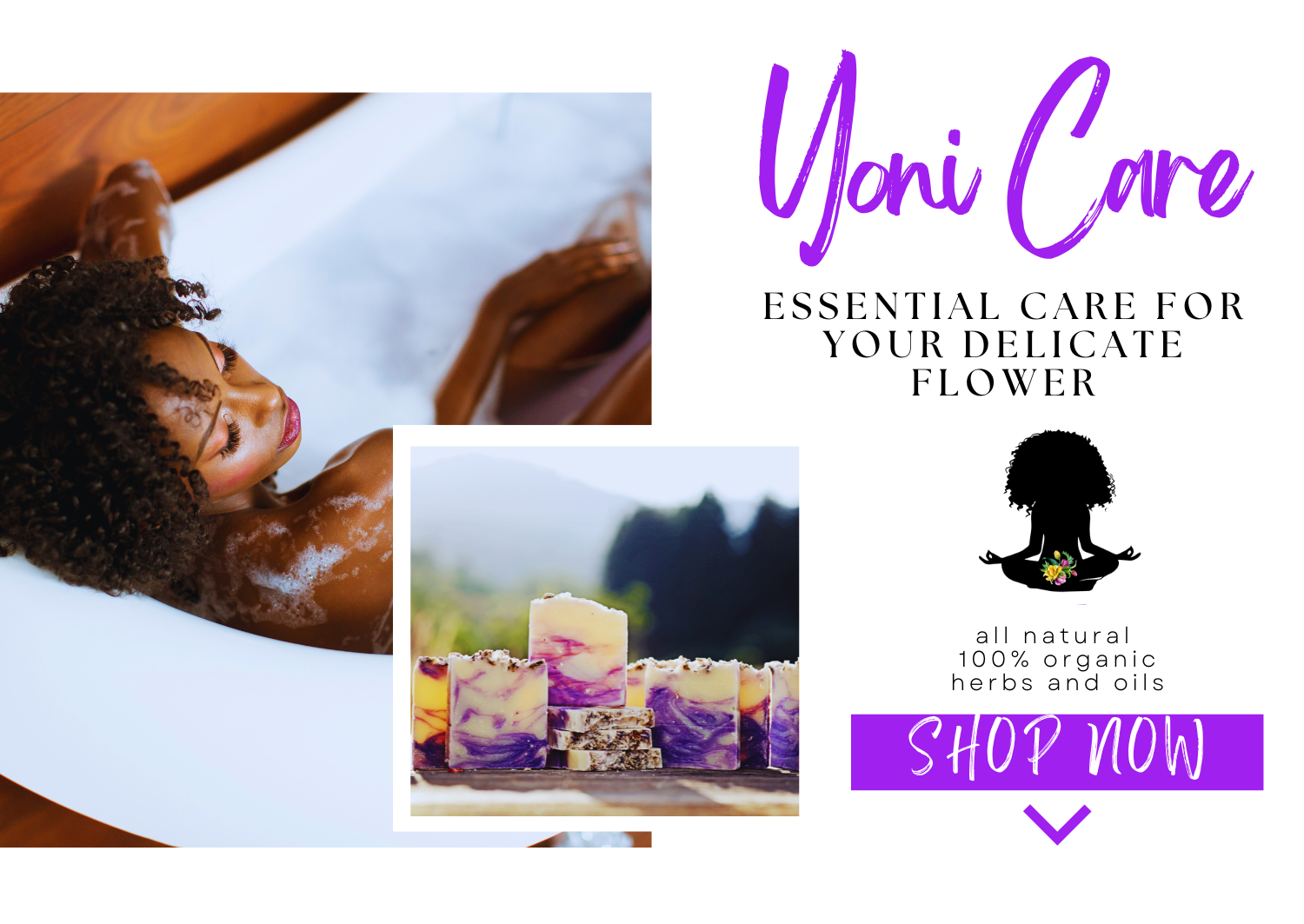 My mission is to provide women with the proper and essential care for their delicate flower. Each handcrafted bar is infused with all natural and 100% organic herbs and oils.